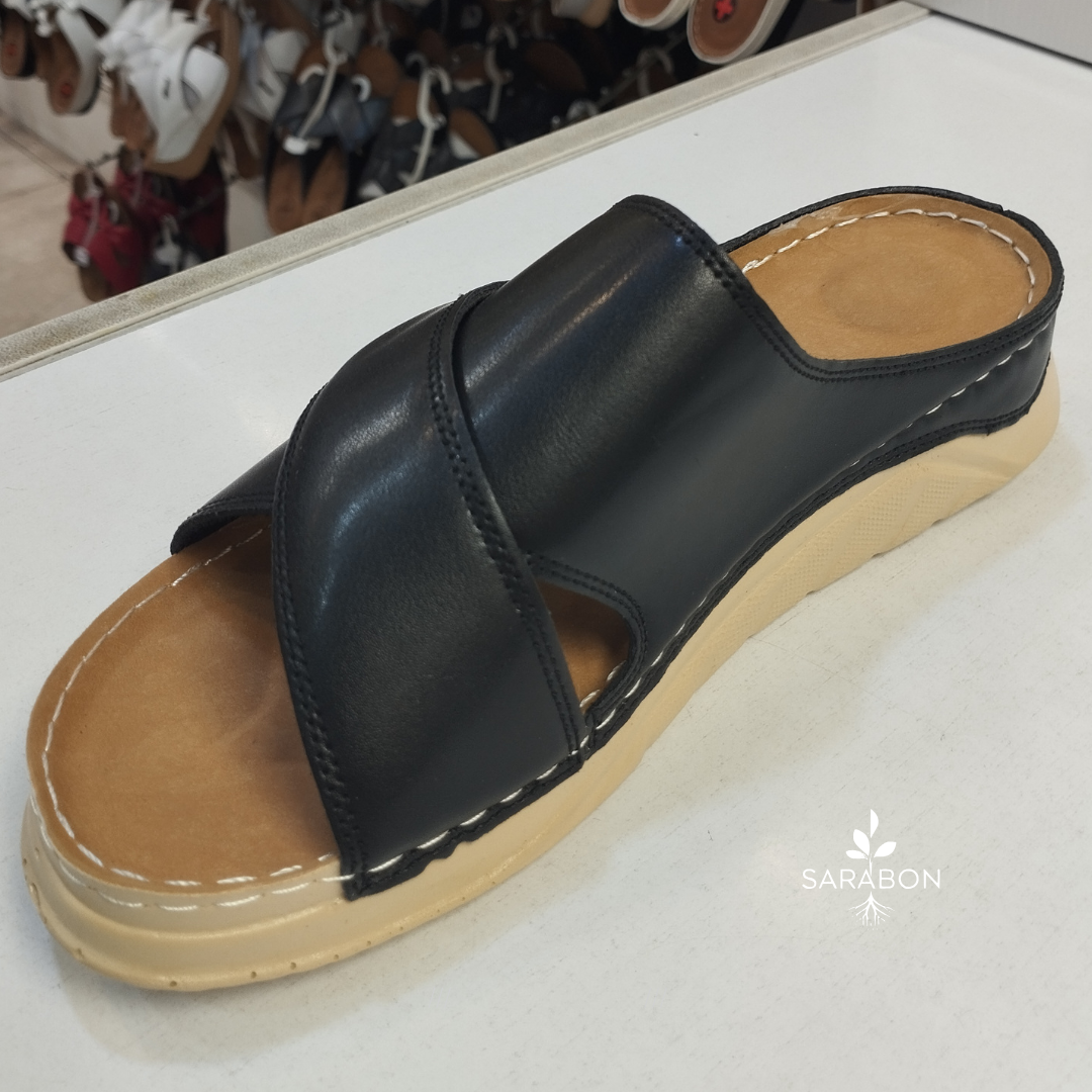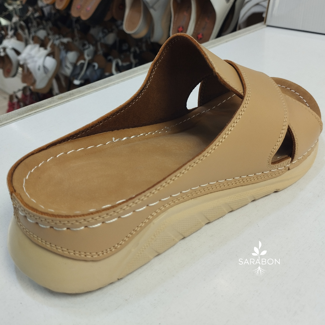 زیرهی ساخته شده از پییو نرم (PU Soft) انعطافپذیری بالا و دوام طولانی دارد و از لیز خوردن جلوگیری میکند. رویهی چرم مصنوعی مقاوم علاوه بر زیبایی، استحکام لازم را برای استفاده روزانه فراهم میآورد.