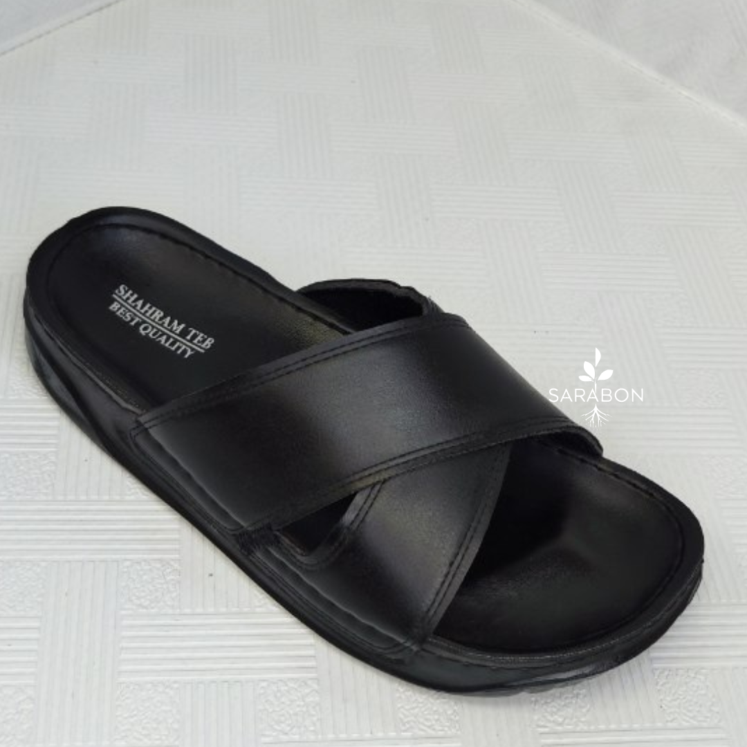 دمپایی طبی مدل سالار با زیره پی‌یو نرم و رویه چرم مصنوعی، کفی طبی قوس‌دار و طراحی مقاوم، انتخابی ایده‌آل برای استفاده روزمره است. موجود در رنگ مشکی و سایز ۴۰ تا ۴۶.
